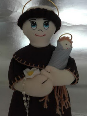 Este Stº António tem 10 cm de altura e foi feito para ser colocado num ramo para atirar às solteiras.